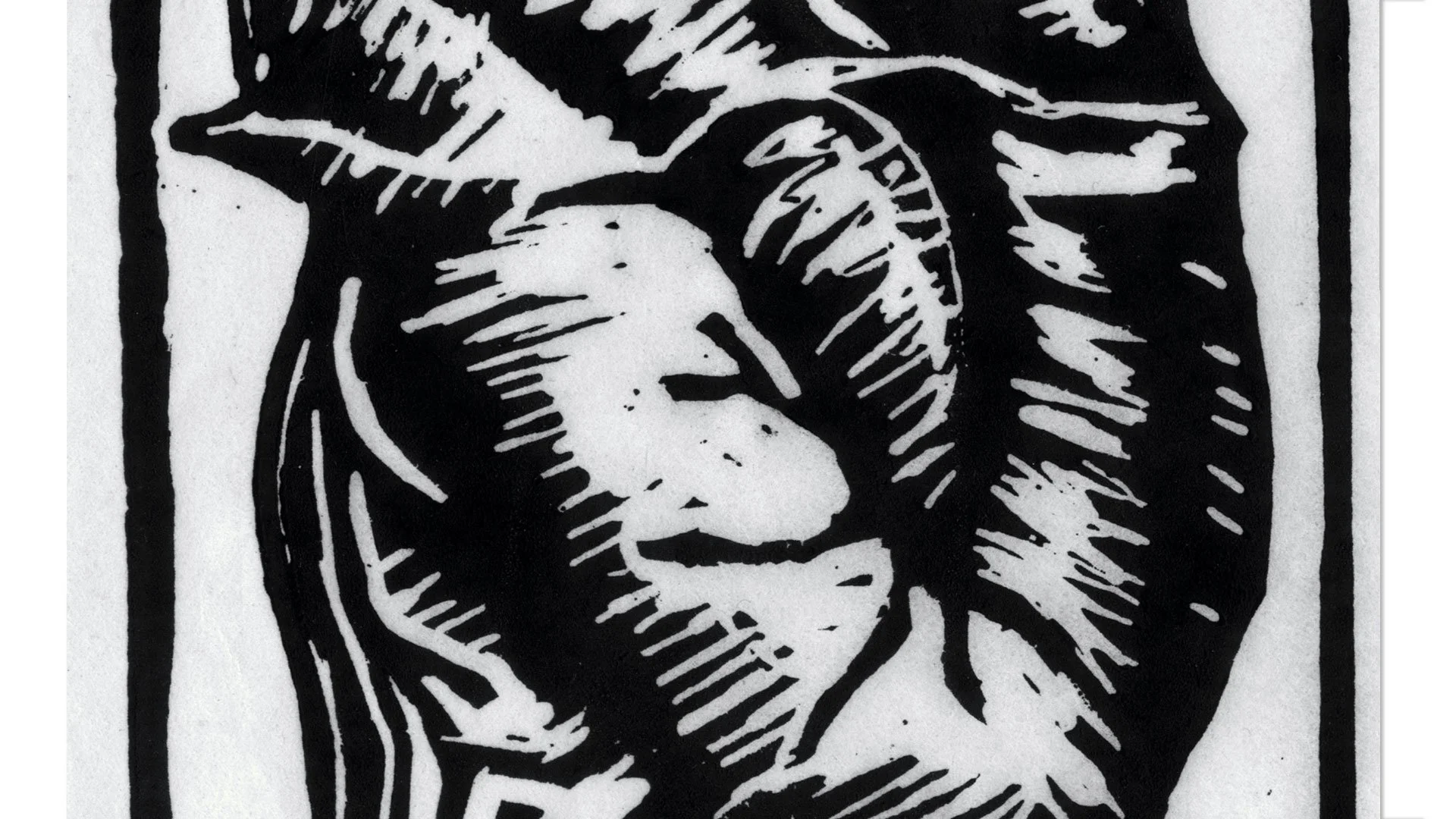This linoleum print is inspired by tarot cards and Mexican art. In this artwork, Lotte Hauss captures the raw energy and passion of the human heart. Using the technique of relief printing, she emphasizes the powerful symbolism and dynamism.