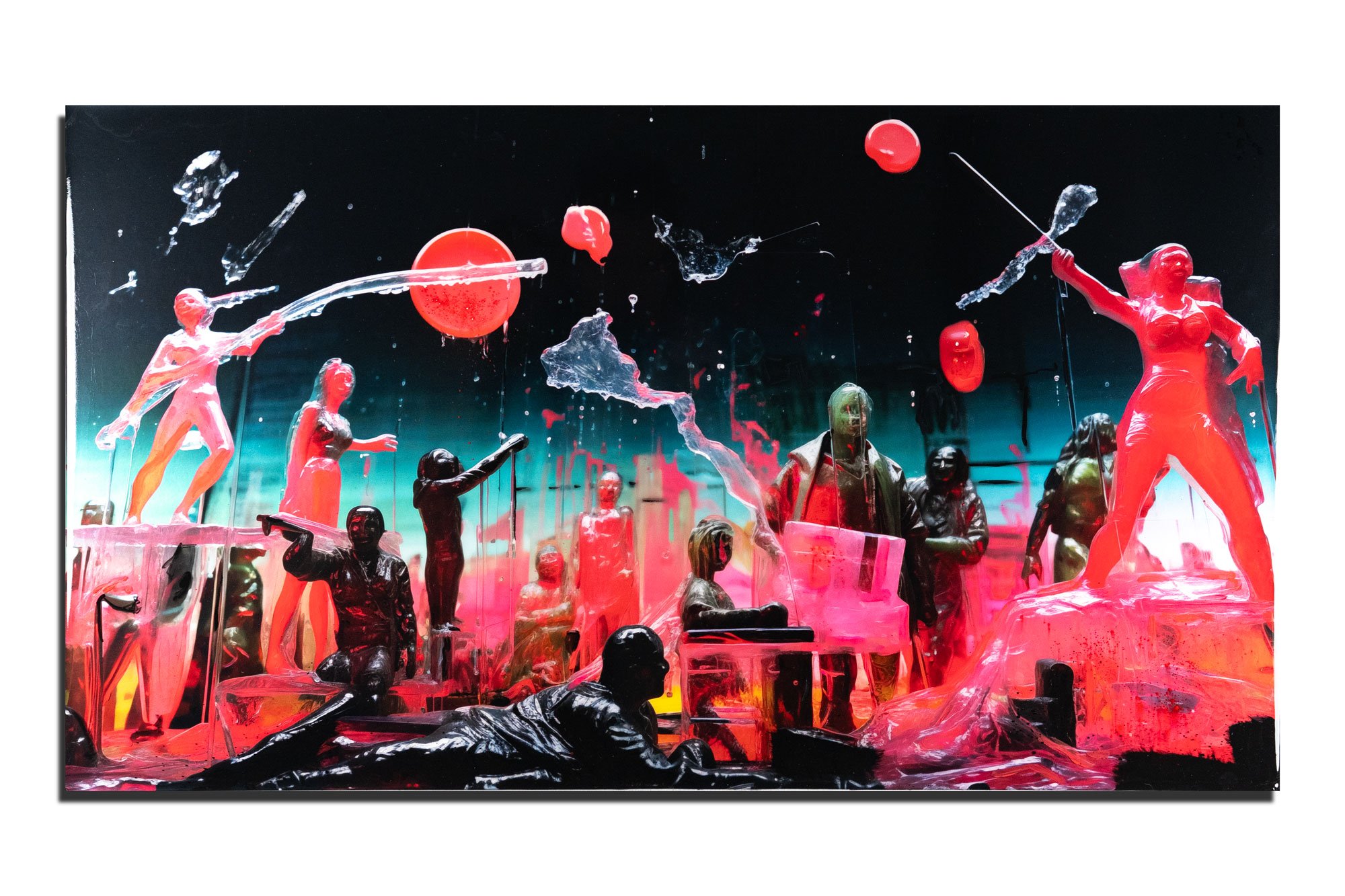 Serielles Unikat, 80x45 cm. Print, pigment, acrylics, epoxy resin. (2023)