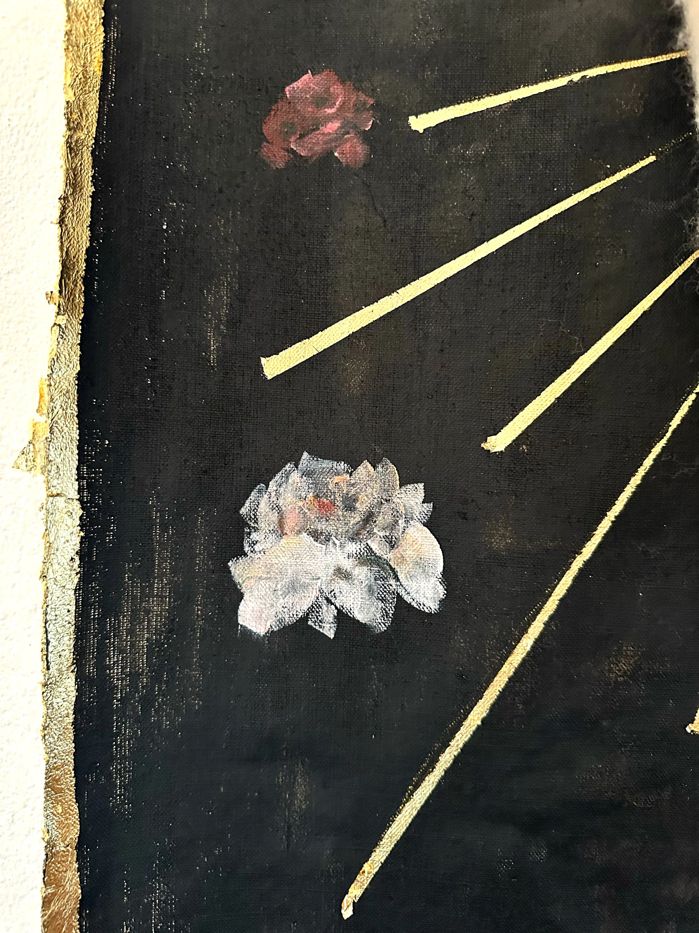 Wool, Acrylic Paint, Leaf Gold, Textiles on canvas. 140 × 72 × 20cm (2026).