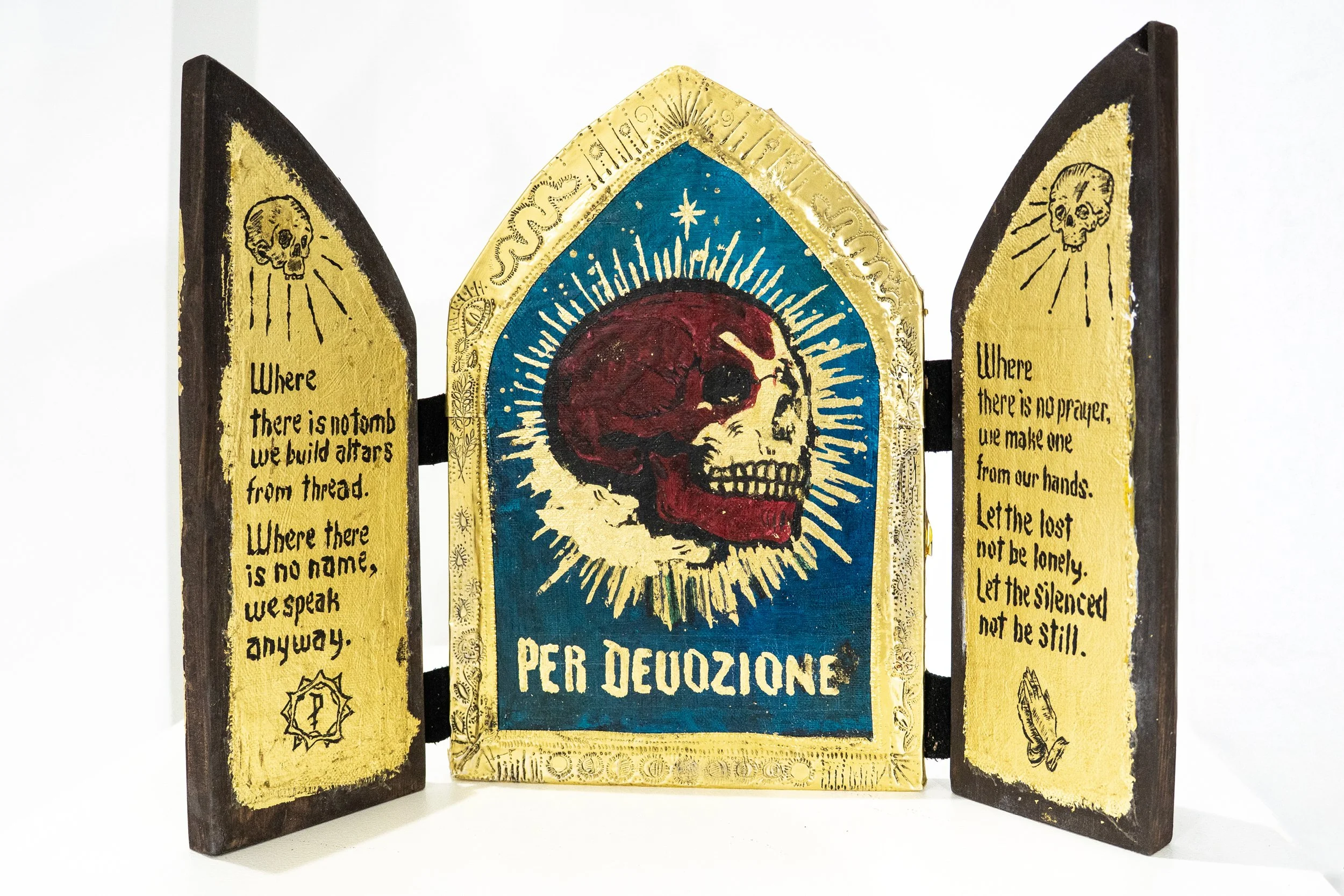 Per devozione: A table altar dedicated to everything that has no tomb, no name, and yet refuses to go quiet.