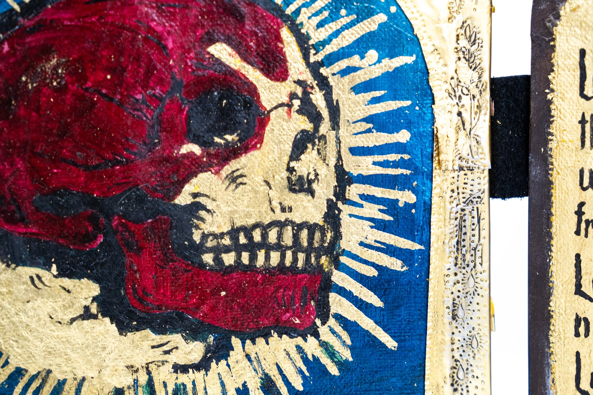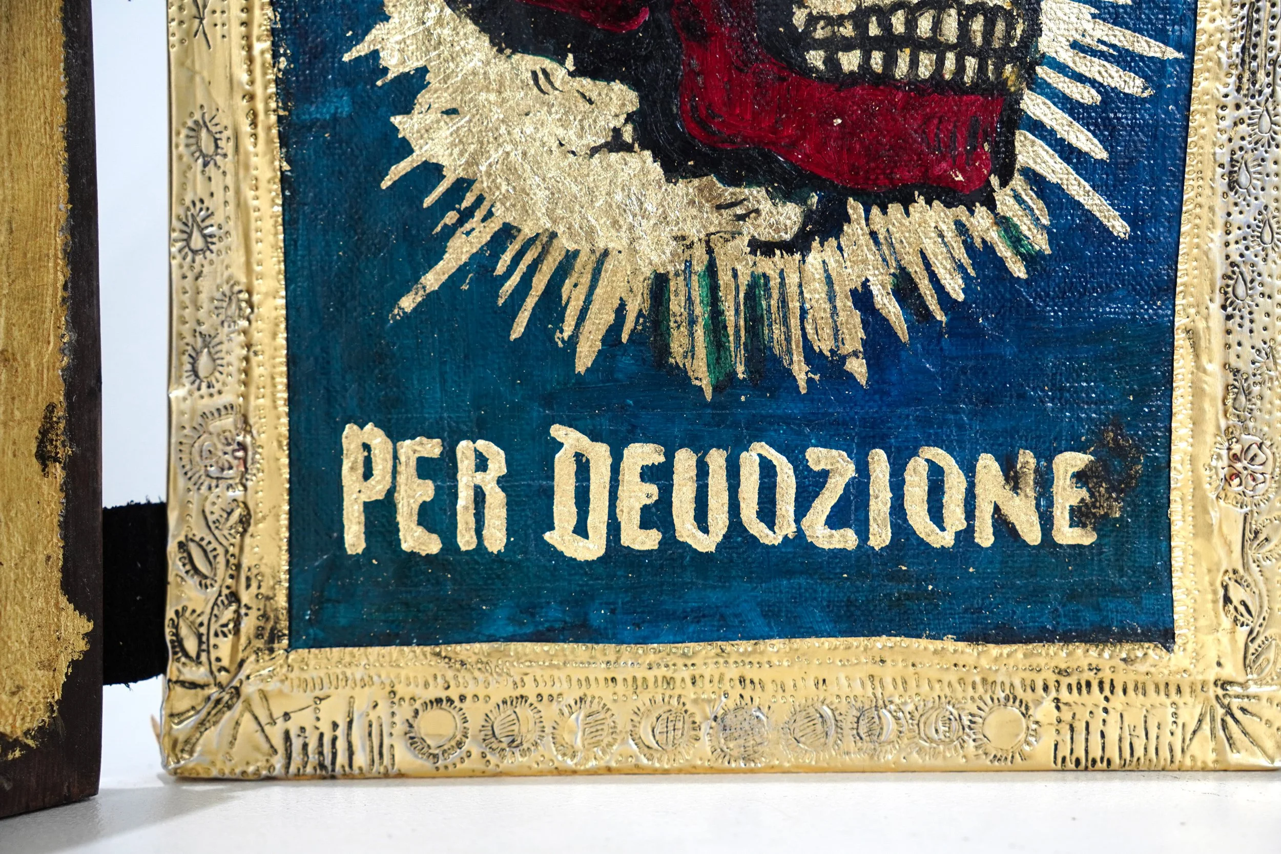In the old pezzentelle tradition, the living adopt an abandoned skull and care for it, giving the forgotten dead a voice and a home. This table altar continues that work: a small, bright reliquary for everything that has no tomb, no name, and yet refuses to go quiet.
