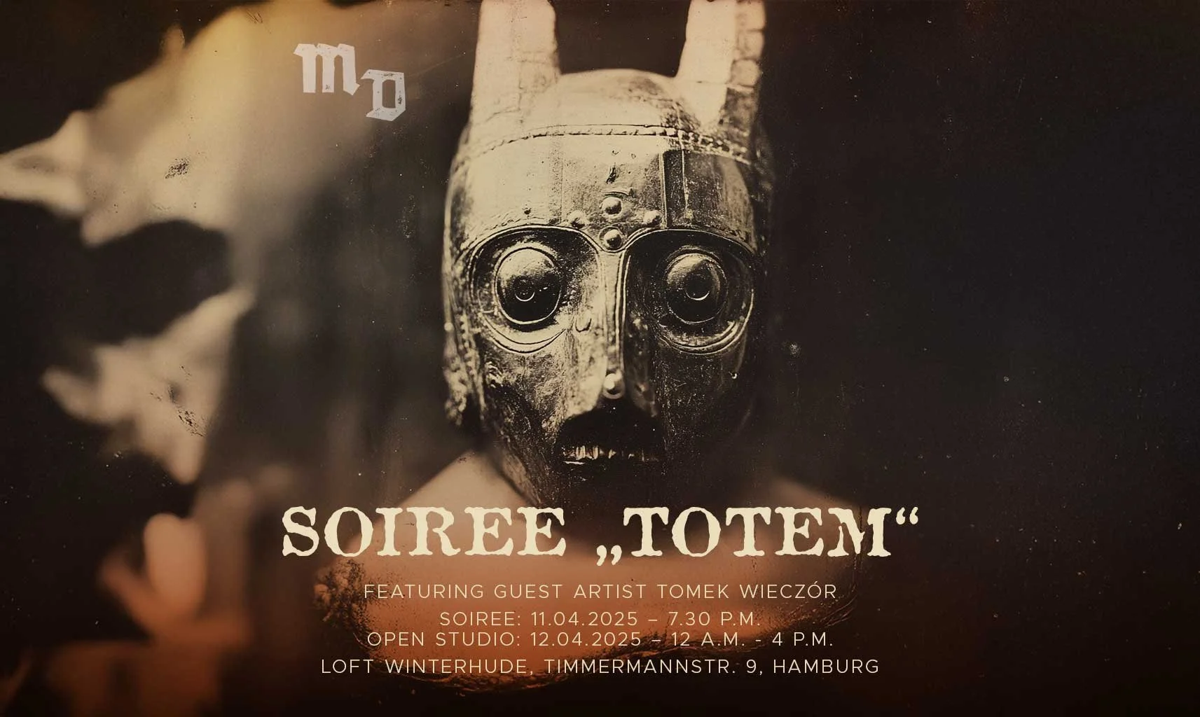 Joining us is guest artist Tomek Wieczór, whose visions will weave into the fabric of the evening. A live performance will unfold—a ritual of art and presence—blurring the line between invocation and revelation. The following day, Saturday, April 12, visitors can view the works in the open studio.